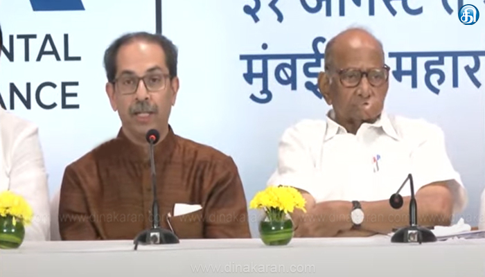 மும்பை: இந்தியாவை பாதுகாக்கவே எதிர்க்கட்சிகள் ஒன்றிணைத்துள்ளோம் என சிவசேனா தலைவர் உத்தவ் தாக்கரே தெரிவித்துள்ளார். மும்பையில் நாளை முதல் 2 நாட்களுக்கு இந்தியா கூட்டணியின் ஆலோசனை கூட்டம் நடைபெற உள்ளது. கூட்டத்துக்கான ஏற்பாடு பற்றி தேசியவாத காங். தலைவர் சரத்பவார், சிவசேனா தலைவர் உ த்தவ் தாக்கரே கூட்டாக பேட்டி அளித்தனர். அப்போது பேசிய உத்தவ் தாக்கரே, மோடி தலைமையிலான சர்வாதிகார ஆட்சிக்கு முடிவு கட்டவே ஒன்று சேர்ந்துள்ளோம் என்றார். ஆலோசனையில் பங்கேற்க நாடு முழுவதும் இருந்து வரும் தலைவர்களுக்கு நாளை உத்தவ் தாக்கரே விருந்தளிக்கிறார்.