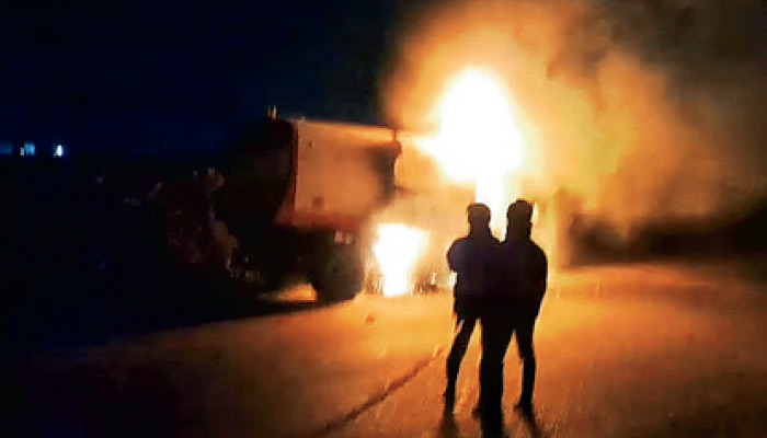 அப்போது வாகனத்தில் இன்ஜின் பகுதியில் இருந்து திடீரென்று புகை வந்த நிலையில், தீப்பிடித்து கொழுந்து விட்டு எரிய துவங்கியது. இதனால் டிரைவர் வாகனத்தைவிட்டுவிட்டு இறங்கி ஓடியதால் உயிர் தப்பினார். இதுகுறித்து தகவல் கிடைத்ததும் மணலி, மாதவரம் பகுதிகளில் இருந்து இரண்டு தீயணைப்பு வாகனங்களில் வந்த வீரர்கள் சுமார் ஒரு மணி நேர போராட்டத்துக்கு பிறகு தீயை அணைத்தனர். இருப்பினும் வாகனம் முற்றிலும் எரிந்து சேதமாகியது. இதுகுறித்து மாதவரம் பால்பண்ணை போலீசார் விசாரிக்கின்றனர்.