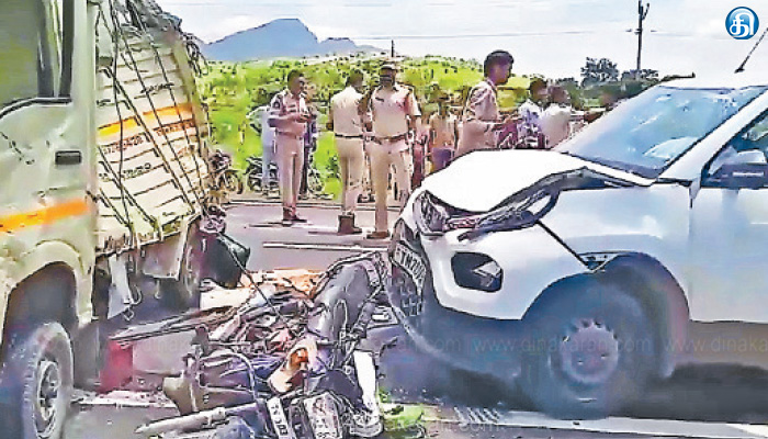 The post ஆந்திராவில் கார், வேன், பைக் மீது லாரி மோதல் அதிகாலை விபத்தில் குழந்தைகள் உட்பட 4 பேர் பலி appeared first on Dinakaran.