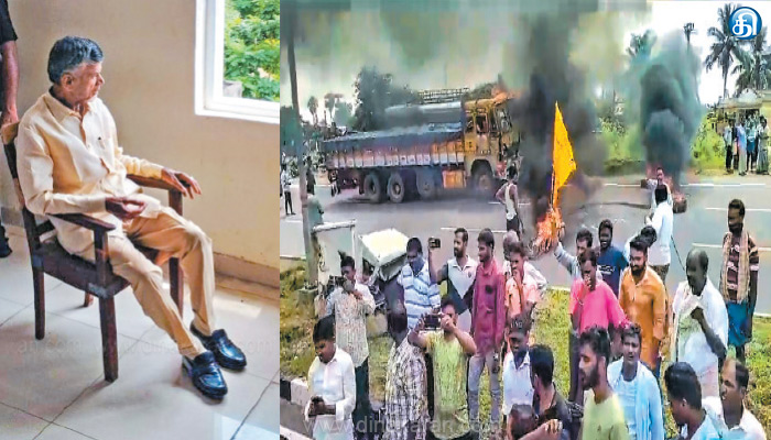 திருமலை: ஊழல் வழக்கில் கைதான ஆந்திர முன்னாள் முதல்வர் சந்திரபாபு நாயுடு நாயுடு சிறையில் அடைக்கப்பட்டார். இதை கண்டித்து தெலுங்கு தேசம் கட்சி நேற்று முழு அடைப்புக்கு அழைப்பு விடுத்தது. ெதாடர்ந்து, அக்கட்சியினர் சாலை மறியல் மற்றும் டயர்களை எரித்து போராட்டத்தில் ஈடுபட்டனர். மேலும், பள்ளி மற்றும் கல்லூரிகளுக்கு விடுமுறை விடப்பட்டன. தெலுங்கு தேசம் கட்சி தலைவர், ஆந்திர மாநில முன்னாள் முதல்வர் சந்திரபாபு நாயுடு ஆட்சி காலத்தில் இளைஞர்களுக்கு திறன் மேம்பாட்டு பயிற்சி வழங்கும் திட்டத்தில் ₹371 கோடி ஊழல் நடந்ததாக சிறப்பு புலனாய்வு அதிகாரிகள் வழக்கு பதிவு செய்தனர்.