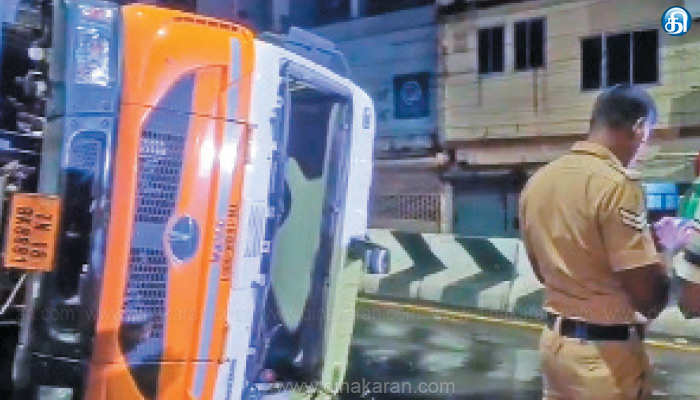 அமைந்தகரையில் லாரி கவிழ்ந்து விபத்து