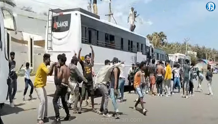 கன்னியாகுமரி: கன்னியாகுமரி காந்திமண்டபம் அருகே சாலையில் வாகனத்தை நிறுத்திவிட்டு மதுபோதையில் அட்டகாசம் செய்த இளைஞர்களால் சுற்றுலாப்பயணிகள் அச்சமடைந்தனர். கன்னியாகுமரி கடற்கரைக்கு சூரிய உதயத்தையும், மறைவையும் கான தினமும் சுற்றுலா பயணிகள் வந்து செல்கின்றனர். அங்கு வந்த சுற்றுலா பயணிகள் சிலர் திடீரென காந்திமண்டபம் அருகே அமைந்துள்ள காட்சி கோபுரம் அருகே தங்கள் வாகனங்களை நிறுத்தினர். அதில் இருந்த இளைஞர்கள் சிலர் சாலையில் இறங்கி நடனமாட தொடங்கினர்.