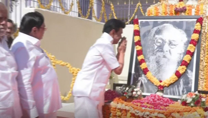 வேலூரில் பெரியார் சிலைக்கு முதலமைச்சர் மு.க.ஸ்டாலின் மலர்தூவி மரியாதை!