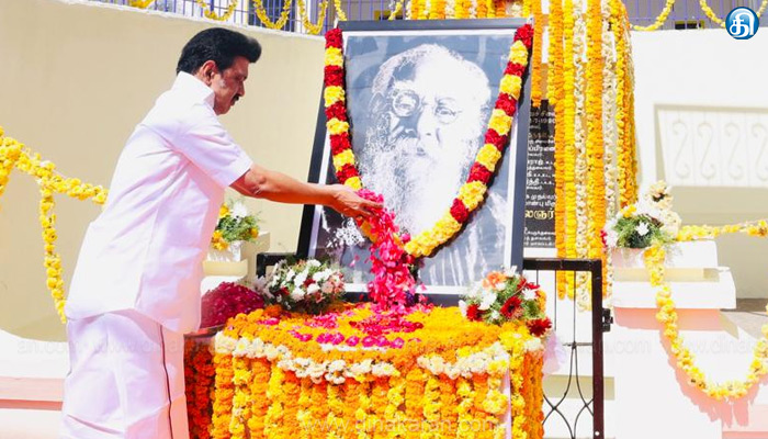The post தந்தை பெரியாரின் 145-வது பிறந்தநாளை முன்னிட்டு முதல்வர் மு.க.ஸ்டாலின் மரியாதை appeared first on Dinakaran.