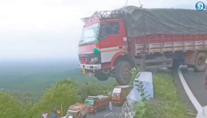 திம்பம் மலைப்பாதையில் 9வது கொண்டை ஊசி வளைவு அருகே சென்றபோது கட்டுப்பாட்டை இழந்து லாரி ஓட ஆரம்பித்தது.கண் இமைக்கும் நேரத்தில் சாலையோர தடுப்புச்சுவரில் மோதி மலைப்பள்ளத்தில் உருண்டுவிழும் நிலை ஏற்பட்டது. ஆனால் அதிர்ஷ்டவசமாக லாரியில் இருந்த பொருட்களின் பாரம் காரணமாகவும், லாரியின் நடுப்பகுதி தரையில் தட்டியதாலும், டிரைவரின் முயற்சியாலும் லாரி நின்றது.