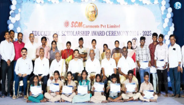 இதில், திருப்பூர் மாநகராட்சி ஆணையர் பவன்குமார் ஜி.கிரியப்பவனார் பங்கேற்று மாணவ, மாணவிகளுக்கு கல்வி உதவித்தொகை வழங்கி, கல்வியின் சிறப்பு குறித்து பேசினார். நிகழ்ச்சியில், எஸ்சிஎம் குழும தலைவர் டி.கே.சந்திரன், நிர்வாக இயக்குனர்கள் கே.பரஞ்சோதி, கே.விநாயகம், என்.கே.நந்தகோபால், பி.பி.கே.பரமசிவம் மற்றும் முதன்மை மார்க்கெட்டிங் அதிகாரி அருள் சரவணன் உள்ளிட்டோர் பங்கேற்றனர்.