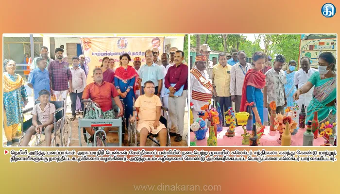 பின்னர் பனப்பாக்கம் அரசு ஆண்கள் மேல்நிலை பள்ளியில் ஆய்வு செய்து, கடந்த 5 ஆண்டுகளாக 10 வகுப்பு தேர்ச்சி 60 சதவீதம் மட்டுமே உள்ளதால், தேர்ச்சி சதவீதத்தை அதிகரிக்க தலைமையாசிரியருக்கு அறிவுரை வழங்கினார்.. மேலும், நெடும்புலி பகுதியில் உள்ள ரேஷன் கடையை கலெக்டர் சந்திரகலா ஆய்வு செய்துஇருப்புகளை சரிபார்த்தார். தொடர்ந்து, பனப்பாக்கம் அரசு மாதிரி பெண்கள் மேல்நிலைப் பள்ளியில் நடைபெற்ற மாற்றுத்திறனாளிகள் முகாமில் கலந்து கொண்டு, மாற்றுத் திறனாளிகளுக்கு திட்டங்கள் குறித்து எடுத்துரைத்து நலத்திட்ட உதவிகளை வழங்கினார்.