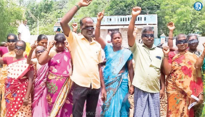 அச்சிறுப்பாக்கம் மின்வாரிய அலுவலகம் முன்பு மின் தடையை கண்டித்து கண்களில் கருப்பு துணி கட்டி ஆர்ப்பாட்டம்