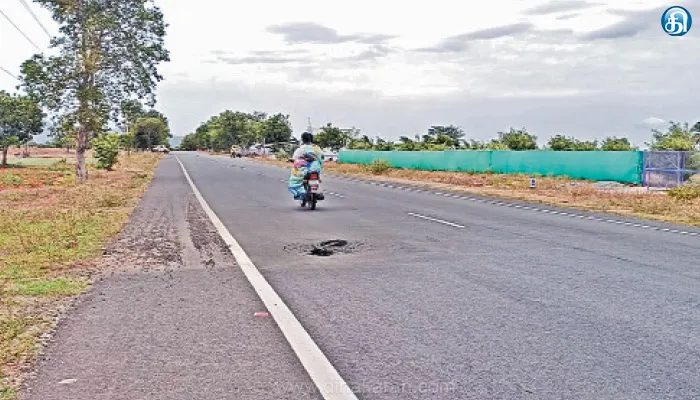 அதற்குள் சாலையில் மெகா சைஸ் பள்ளம் ஏற்பட்டு விட்டது. இந்த பள்ளத்தால் டூவீலர்களில் செல்வோர் அடிக்கடி விபத்தில் சிக்கி கை கால் முறிவு ஏற்பட்டு வருகிறது. மேலும் இரவு நேரங்களில் பள்ளம் தெரியாததால் பெரியளவில் விபத்தில் சிக்கி வருகின்றனர். எனவே நெடுஞ்சாலை துறை அதிகாரிகள் உயிரிழப்பு ஏற்படும் முன் உடனடியாக சாலையில் உள்ள பெரும் பள்ளத்தை சரிசெய்ய நடவடிக்கை எடுக்க வேண்டும்’ என்றனர்.