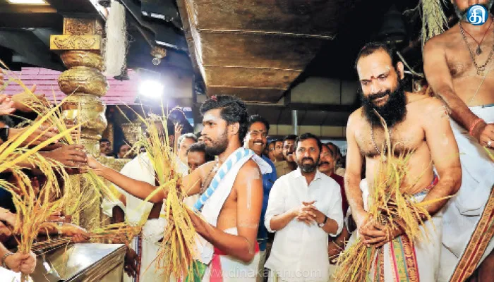 பாலக்காடு மற்றும் அச்சன்கோவில் ஆகிய இடங்களில் இருந்து கொண்டு வரப்பட்ட நெற்கதிர்கள் பூஜைக்குப் பின்னர் பக்தர்களுக்கு பிரசாதமாக வழங்கப்பட்டது. தொடர்ந்து வழக்கமான பூஜைகளுக்குப் பின்னர் இரவு 10 மணிக்கு கோயில் நடை சாத்தப்பட்டது.