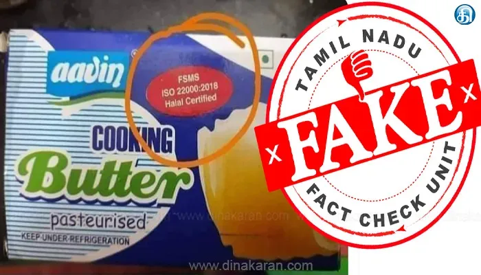 ஆவினில் ஹலால் நெய் கோயில்களுக்கு விற்பனை என வலைத்தளங்களில் பரப்பப்பட்ட செய்தி வதந்தி என உண்மை சரிபார்ப்பகம் தெரிவித்துள்ளது. இது தொடர்பாக தமிழ்நாடு அரசு அமைத்துள்ள உண்மை சரிபார்ப்பகம் கூறியதாவது; ஆவின் நிறுவனத்தின் தயாரிப்புகள் 15க்கும் மேற்பட்ட அரபு நாடுகளுக்கு ஏற்றுமதி செய்யப்படுகிறது. அரபு நாட்டுக்கு ஏற்றுமதி செய்யப்படும் பொருட்களில் மட்டுமே ஹலால் முத்திரை இடம்பெறுகிறது. தமிழ்நாட்டில் விற்கப்படும் ஆவின் தயாரிப்புகளில் ஹலால் முத்திரை இடம்பெறாது என உண்மை சரிபார்ப்பகம் தெரிவித்துள்ளது.