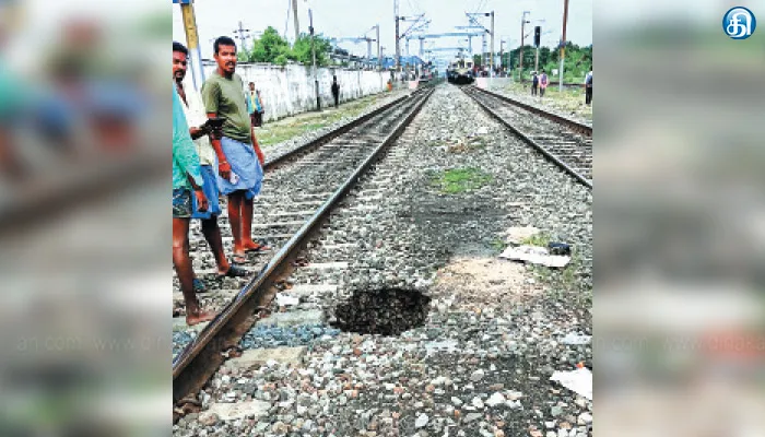 ஆவடி: அண்ணனூர் ரயில்நிலையம் அருகே இன்று காலை தண்டவாளத்தை ஒட்டிய பகுதியில் திடீரென ராட்சத பள்ளம் உருவானது. இதனால் அப்பகுதியில் மின்சார ரயில்கள் சுமார் ஒரு மணி நேரம் தாமதமாக கடந்து சென்றது. ஆவடி அருகே அண்ணனூர் ரயில் நிலையம் அருகே தண்டவாளத்தை ஒட்டிய பகுதியில் கடந்த சில நாட்களாக மின்கம்பிகள் சீரமைக்கும் பணிகள் நடைபெற்றன.
