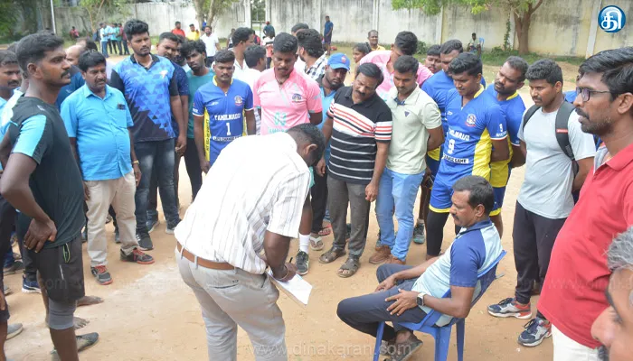 நாக் அவுட் முறையில் போட்டிகள் நடைபெற்று வந்த நிலையில் அரை இறுதி போட்டியும் நாக் அவுட் முறையில நடத்தப்படும் என எதிர்பார்க்கப்பட்டது. அந்த நேரம் அங்கு வந்த போச்சம்பள்ளி பட்டாலியன் எஸ்.பி. சங்கு, அரை இறுதி போட்டிகளை லீக் முறையில தான் நடத்த வேண்டும் என கூறி கைப்பந்து போட்டி நடைபெறும் மைதானத்தின் நடுவில் நாற்காலி போட்டு அமர்ந்து வாக்குவாதத்தில் ஈடுபட்டார். லீக் போட்டி நடத்துவதற்கு போலீஸ் அணியும், கல்வித்துறை அணியும் ஏற்றுக் கொள்ளவில்லை. இதனால் 2 மணி நேரத்திற்கும் மேலாக போட்டிகள் நடக்கவில்லை.