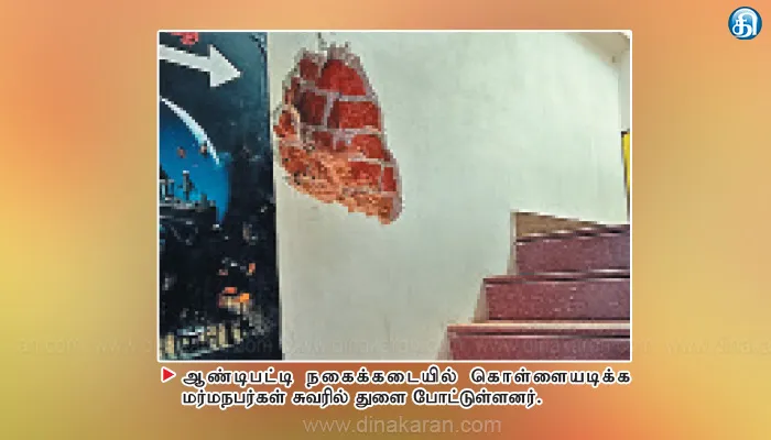 The post ஆண்டிபட்டியில் சுவரை துளையிட்டு நகைக்கடையில் கொள்ளை முயற்சி appeared first on Dinakaran.