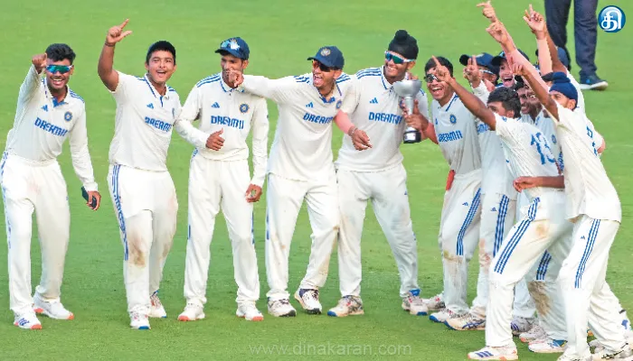 சென்னை: ஆஸ்திரேலியா யு-19 அணியுடன் நடந்த 2வது டெஸ்டில் இன்னிங்ஸ் மற்றும் 120 ரன் வித்தியாசத்தில் அபாரமாக வென்ற இந்தியா யு-19 2-0 என்ற கணக்கில் தொடரை முழுமையாகக் கைப்பற்றி ‘ஒயிட்வாஷ்’ செய்தது. சேப்பாக்கம் எம்.ஏ.சிதம்பரம் ஸ்டேடியத்தில் நடந்த இப்போட்டியில், டாஸ் வென்று பேட் செய்த இந்தியா யு-19 அணி முதல் இன்னிங்சில் 492 ரன் குவித்து ஆல் அவுட்டானது.