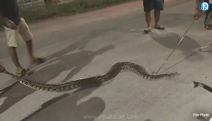 வடகனரா: வடகனரா மாவட்டம் கார்வார் குமட்டா தாலுகாவின் பார்கியில், நேற்று அதிகாலை இந்திரா படகரா என்பவரின் வீட்டு அருகே உள்ள மாமரத்தில் 12 அடி நீள பாம்பு இருந்தது. மாமரத்தில் அமர்ந்து சிறிது நேரம் பதற்றத்தை ஏற்படுத்தி வந்தது. மரத்தில் பாம்பு இருந்ததை கண்டு பயந்துபோன வீட்டுக்காரர்கள் பாம்பு பிடிவீரர் அசோக நாயக்காவுக்கு தகவல் தெரிவித்தனர். உடனடியாக வந்த அசோகா, ஒரு மணி நேரத்திற்கும் மேலாக முயற்சி செய்து கலிங்க பாம்பை கீழே இறக்கி மீட்டார். பின்னர் பாம்பை அருகில் உள்ள வனப்பகுதிக்கு கொண்டு சென்று விடப்பட்டது. இதனால் குடியிருப்பு வாசிகள் நிம்மதி அடைந்தனர்.