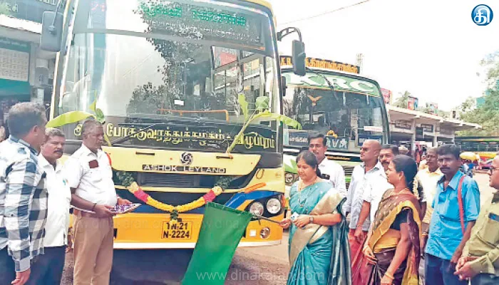 காஞ்சிபுரம் மண்டலத்திற்கு ஒதுக்கீடு செய்யப்பட்ட பேருந்துகளில் ஒன்று கோயில் நகரமான காஞ்சிபுரத்தில் இருந்து புனித நகரமான திருப்பதிக்கு செல்லும் வழித்தடத்திற்கு ஒதுக்கீடு செய்யப்பட்டு, அதன் துவக்க விழா காஞ்சிபுரம் பேருந்து நிலையத்தில் நேற்று நடைபெற்றது. இதில், காஞ்சிபுரம் எம்எல்ஏ எழிலரசன் கலந்துகொண்டு, காஞ்சிபுரத்தில் இருந்து திருப்பதிக்கு செல்லும் புதிய பேருந்து சேவையை கொடியசைத்து துவக்கி வைத்தார்.
