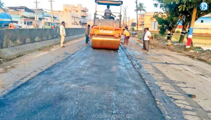 இதனையடுத்து, பொன்னேரி நெடுஞ்சாலைத்துறை கண்காணிப்பு பொறியாளர் செல்வகுமாரின் ஆலோசனையின் பேரில் கோட்ட பொறியாளர் சிற்றரசு, உதவி கோட்ட பொறியாளர் பாலச்சந்தர், இளநிலை பொறியாளர் பரந்தாமன், நெடுஞ்சாலைத்துறை ஊழியர்கள் மூலம் மீஞ்சூரில் இருந்து காட்டுப்பள்ளி தச்சூர் கூட்டுசாலை வரை சுமார் 12 கிமீ தூரத்துக்கு சீரமைக்கப்பட்டது. அப்போது, சாலையின் நடுவே உள்ள தடுப்புச் சுவர்கள், வேகத்தடைகளில் கருப்பு, வெள்ளை நிறத்தில் வண்ணம் தீட்டும் பணி தீவிரமாகி நடந்து வருகிறது. மேலும் மீஞ்சூர் முதல் வல்லூர் அத்திப்பட்டு, காட்டுப்பள்ளி தச்சூர் கூட்டு சாலை வரை சாலையின் நடுவே பழுதடைந்த பகுதிகளை கண்டெடுத்து தார் சாலை போடும் பணிகளை நெடுஞ்சாலை துறையினர் மேற்கொண்டு வருகின்றனர்.