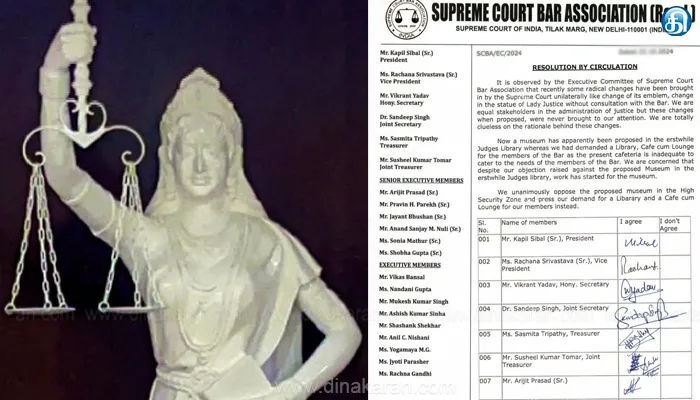 நீதிதேவதை சிலையில் மாற்றம் செய்ய உச்சநீதிமன்ற பார் அசோசியேசன் எதிர்ப்பு..!!