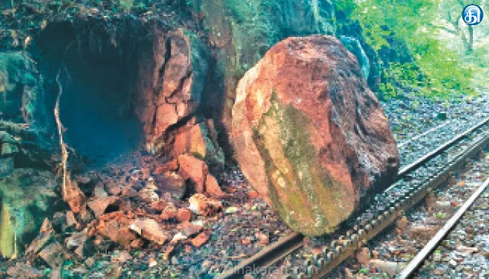 The post மலை ரயில் பாதையில் ராட்சத பாறை விழுந்தது: 184 பயணிகள் தப்பினர் appeared first on Dinakaran.