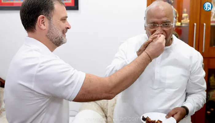 The post காங். தலைவர் பதவியில் 2 ஆண்டுகள் நிறைவு கார்கே வீட்டிற்கு சென்று ராகுல் வாழ்த்து appeared first on Dinakaran.