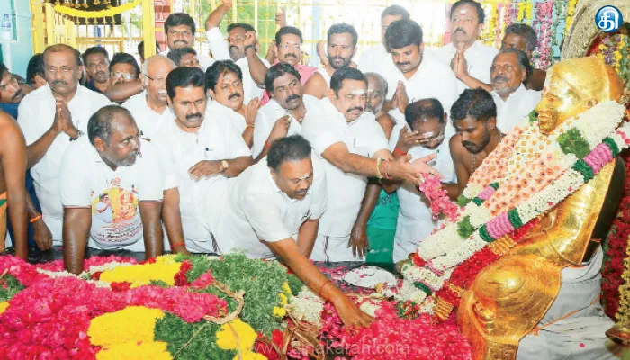 அதிமுக சார்பில் பொதுச்செயலாளர் எடப்பாடி பழனிசாமி, மாலை அணிவித்து மரியாதை செலுத்தினார். அவருடன் முன்னாள் அமைச்சர்கள் திண்டுக்கல் சீனிவாசன், நத்தம் விஸ்வநாதன், அன்வர்ராஜா, காமராஜ், விஜயபாஸ்கர், உதயகுமார், செல்லூர் ராஜூ மற்றும் டாக்டர் சரவணன் உள்ளிட்டோரும் மரியாதை செலுத்தினர்.