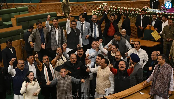 ஸ்ரீநகர்: ஜம்மு காஷ்மீர் முதல்வராக தேசிய மாநாட்டு கட்சி தலைவர் உமர் அப்துல்லா பதவியேற்ற பிறகு, கடந்த 4ம் தேதி முதன்முறையாக சட்டப்பேரவை கூட்டம் கூடியது. நேற்று முன்தினம் அவை கூடியபோது, 370வது சட்டப்பிரிவை மீண்டும் கொண்டு வருவது குறித்த தீர்மானம் முன்மொழியப்பட்டது. இதற்கு எதிர்ப்பு தெரிவித்து பாஜ பேரவை உறுப்பினர்கள் முழக்கமிட்டனர். இதனால் அவை நாள் முழுவதும் ஒத்தி வைக்கப்பட்டது. நேற்று காலை அவை மீண்டும் கூடியபோது பாஜ உறுப்பினரும், எதிர்க்கட்சி தலைவருமான சுனில் சர்மா சிறப்பு அந்தஸ்து மீட்பு தீர்மானத்துக்கு எதிர்ப்பு தெரிவித்து பேசினார். அப்போது அவாமி இத்தேஹாத் கட்சி தலைவரும், பேரவை உறுப்பினருமான லங்காதே ஷேக் குர்ஷீத் 370வது சட்டப்பிரிவு, 35ஏ சட்டப்பிரிவுகளை மீட்டெடுக்க வேண்டுமென்ற வாசகங்கள் அடங்கிய பதாகைகளை ஏந்தி முழக்கமிட்டார்.