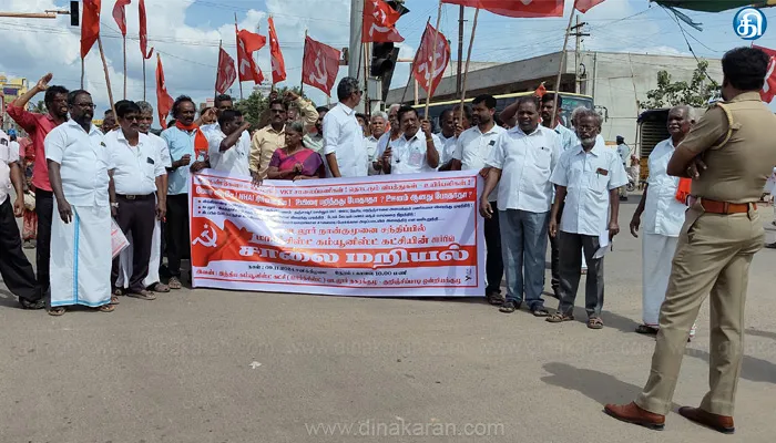 The post சாலை பணிகளை விரைந்து முடித்திட வலியுறுத்தி மார்க்சிஸ்ட் கம்யூனிஸ்ட் கட்சியின் சார்பில் சாலை மறியல் போராட்டம் appeared first on Dinakaran.