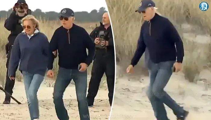 இதன் காரணமாக அதிபர் தேர்தலிலிருந்தே விலக நேரிட்டது. இந்நிலையில் ஜோ பைடன், தனது டெலாவர் வீட்டுக்கு அருகே மணற்பாங்கான கடற்கரையில் நடந்து செல்லும்போது, அவர் தடுமாறுவதும், அவருக்கு ஜில் பைடன் உதவும் விடியோ சமூக வலைதளத்தில் வைரலாகியிருக்கிறது. 81 வயதை எட்டியுள்ள பைடன், ஒரு குழந்தையை போல சரியாக நடக்க முடியாமல் மெல்ல, மெல்ல தடுமாறியபடியே நடந்து செல்கிறார். இந்த காட்சிகள் தற்போது சமூக வலைத்தளங்களில் வைரலாகி வருகிறது.