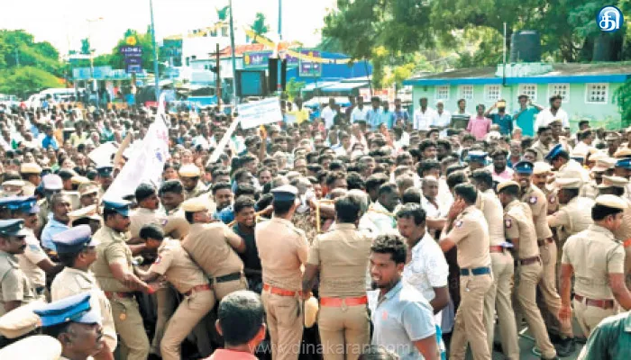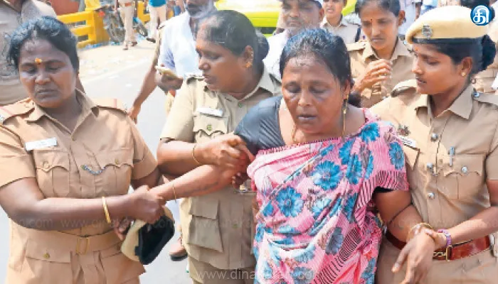 * கடலில் குதித்து பெண்கள் தற்கொலை முயற்சி, போலீசாருடன் தள்ளுமுள்ளுவால் பதற்றம்
