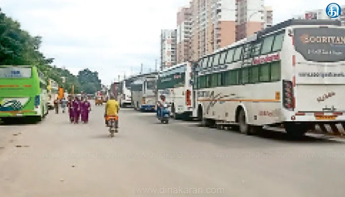 வாகன ஓட்டிகள் கூறியதாவது; கோயம்பேடு ஜெய் பார்க் அருகே சாலையை ஆக்கிரமித்து தனியார் வாகனங்கள் வரிசையாக நிறுத்தப்படுவதால் போக்குவரத்து நெரிசல் ஏற்பட்டு தவிக்கிறோம். வாகன உரிமையாளரிடம் பலமுறை தெரிவித்தும் கண்டுகொள்ளாமல் உள்ளனர். எனவே கோயம்பேடு போக்குவரத்து போலீசார் நடவடிக்கை எடுத்து உடனடியாக வாகனங்களை அப்புறப்படுத்த வேண்டும். இவ்வாறு தெரிவித்தனர்.