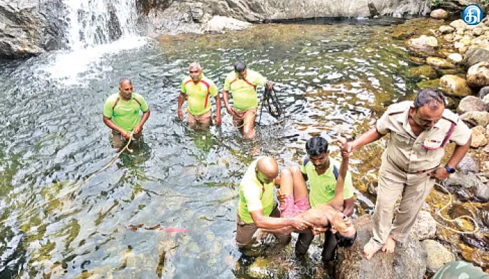 ராஜபாளையம்: ராஜபாளையம் அருகே அருவி தண்ணீரில் மூழ்கி பிளஸ் 1 மாணவர் உயிரிழந்தார்.விருதுநகர் மாவட்டம், ராஜபாளையம் அருகே ஆவரம்பட்டி தெருவை சேர்ந்தவர் குருசாமி மகன் சக்தி மகேஸ்வரன் (16). பிளஸ் 1 படித்து வந்தார். இவர் தனது உறவினருடன் ராக்காச்சி அம்மன் கோயில் ஆற்றுக்கு அருகே உள்ள மீன்கொத்தி பாறை அருவியில் நேற்று குளிக்க சென்றார். இருவருக்குமே நீச்சல் தெரியாத நிலையில் தண்ணீரில் இறங்கி குளித்துக் கொண்டிருந்தனர்.