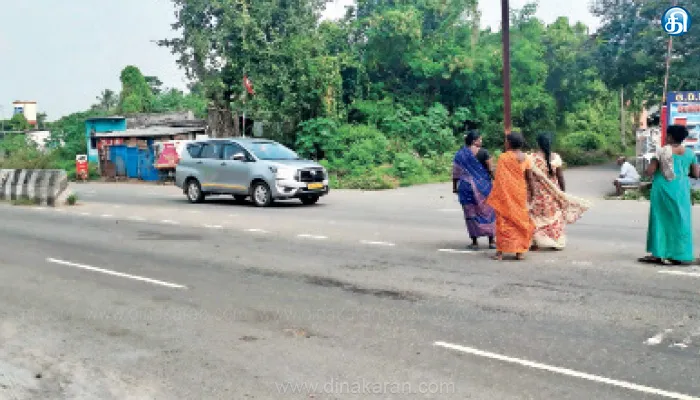 மேலும், சாலை கடக்கும் பகுதியில் நெடுஞ்சாலை துறையினர் முன்னெச்சரிக்கை பலகை பொருத்தப்படவில்லை. மேலும், சாலையை கடக்கும் பாதை வெள்ளை நிற கோடு போடப்பட்டிருக்கும் ஆனால் இப்பகுதியில் அப்படி போன்ற எந்த வெள்ளை நிற கோடுகளும் இல்லை. இவை மட்டுமின்றி இரவு நேரங்களில் பிரதிபலிப்பு ஸ்டிக்கர்களும் இல்லை. இதனால், இந்த சாலையில் அதிவேகமாக வரும் பைக், கார், லாரி உள்ளிட்ட கனரக வாகனங்கள் சாலையை கடக்க முயலும் முதியவர்கள் மீதும் இளைஞர்கள் மீதும் மோதி விபத்துக்குள்ளாகும் சூழல் நாள்தோறும் நிலவுகின்றன. மேலும், ஒருசில நேரங்களில் விபத்துக்குள்ளாகி கை, கால்கள் முறிவு ஏற்படுவது மட்டுமின்றி உயிரிழப்புகளும் இப்பகுதியில் அரங்கேறி வருகின்றன.