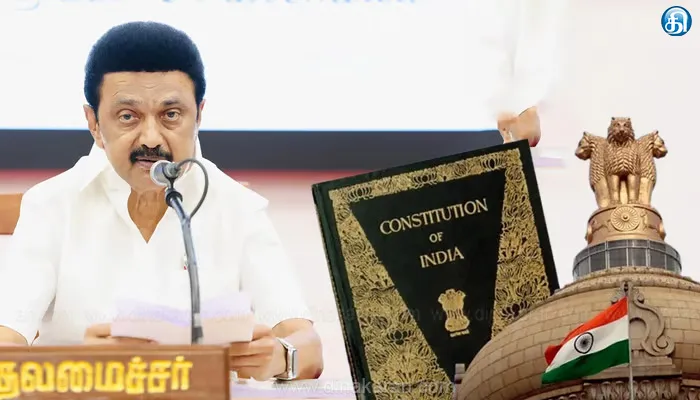 இந்திய அரசியலமைப்பு சட்டத்தின் 75வது ஆண்டினை சிறப்பாக கொண்டாடும் வகையில் வரும் 26ம் தேதி காலை 11 மணிக்கு தலைமை செயலகத்திலுள்ள அனைத்துத் துறைகளிலும், உயர்நீதிமன்றம் மற்றும் மாவட்ட ஆட்சியர் அலுவலகங்கள் உள்ளிட்ட அனைத்து துறை தலைமை அலுவலகங்கள், அனைத்து சார்நிலை அரசு அலுவலகங்கள், மாநில அரசின் அனைத்து அலுவலகங்கள், தன்னாட்சி அதிகார அமைப்புகள், நிறுவனங்கள், தன்னாட்சி அரசு நிறுவனங்கள், அனைத்து பள்ளிகள் மற்றும் கல்லூரிகளிலும் இந்திய அரசியலமைப்பு சட்டத்தின் முகப்புரையை வாசிக்க முதல்வர் மு.க.ஸ்டாலின் உத்தரவிட்டு, அதற்கான ஏற்பாடுகள் செய்யப்பட்டுள்ளன.