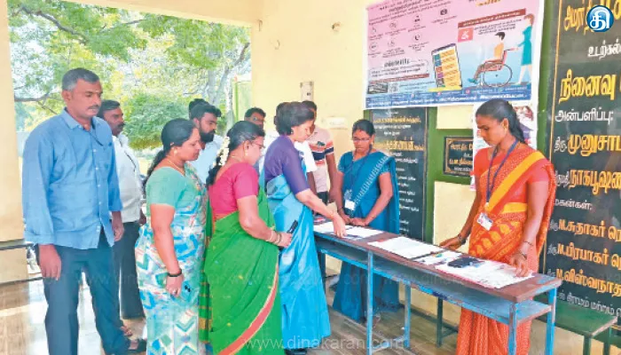 காவேரிப்பாக்கம் ஊராட்சி ஒன்றியத்திற்கு உட்பட்ட ஓச்சேரி ஊராட்சி ஒன்றிய தொடக்கப்பள்ளியில் சிறப்பு சுருக்க திருத்த முகாம் நேற்று நடைபெற்றது. இதில் 18-வயது பூர்த்தி அடைந்த இளம் வாக்காளர்கள் மற்றும் பெயர் திருத்தம் உள்ளிட்டோருக்கு உரிய படிவம் வழங்கி பூர்த்தி செய்தனர். அப்போது, திமுக தெற்கு ஒன்றிய செயலாளர் ஓச்சேரி எம்.பாலாஜி, மாவட்ட பிரதிநிதி பன்னீர்செல்வம், ஒன்றிய இளைஞர்கள் அணி சிவகுமார், பிஎல்ஏ-2, பொறுப்பாளர்கள் சரவணன், கதிர்வேல், அங்கன்வாடி ஊழியர் நிர்மலா, கிராம நிர்வாக உதவியாளர் ஜெயபூரணி உட்பட பலர் உடன் இருந்தனர்.