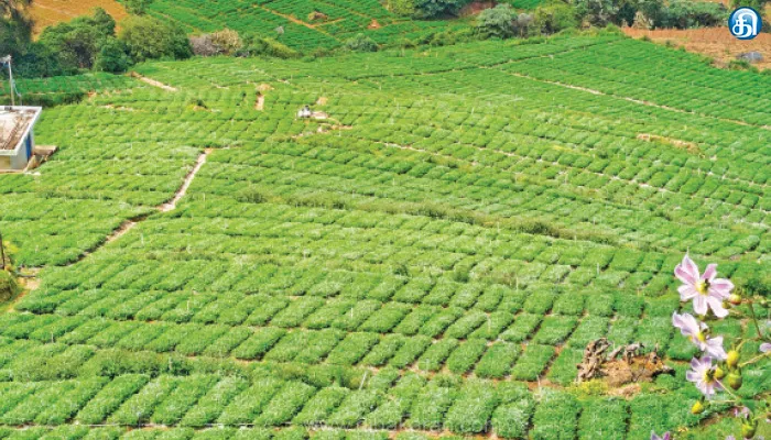 உருளைக்கிழங்கு, கேரட், முட்டைகோஸ், முள்ளங்கி, பீட்ரூட், பீன்ஸ், பட்டாணி போன்ற காய்கறிகள் பயிரிடப்பட்டாலும், தற்போது உருளைக்கிழங்கு மற்றும் கேரட் அதிகளவு பயிரிப்படுகிறது. தற்போது நீலகிரி மாவட்டத்தில் பெரும்பாலான பகுதிகளில் கேரட் பயிரிடப்பட்டுள்ளது. தற்போது பெரும்பாலான பகுதிகளில் அறுவடைக்கு தயாராக உள்ளது.