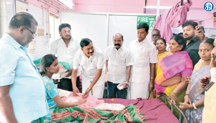 துணை முதல்வர் உதயநிதி ஸ்டாலின் பிறந்தநாளை முன்னிட்டு, பொன்னேரி அரசு மருத்துவமனையில் நேற்றுமுன்தினம் பிறந்த 5 குழந்தைகளுக்கு தங்க மோதிரம் மற்றும் ஊட்டச்சத்து, புத்தாடை ஆகியவற்றை திருவள்ளூர் கிழக்கு மாவட்டச் செயலாளர் டி.ஜெ.கோவிந்தராஜன் எம்எல்ஏ வழங்கினார். மேலும், அரசு மருத்துவமனையில் குழந்தை பெற்ற தாய்மார்கள் 20 பேருக்கு ஊட்டச்சத்து, பழங்கள் புத்தாடைகளை வழங்கினார்.