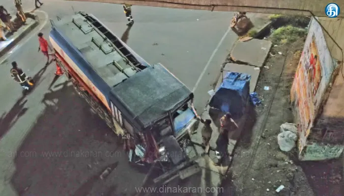 லாரியில் ஓசூரை சேர்ந்த கிரண் கிளீனராக வந்தார். திண்டுக்கல் பைபாஸ் ரோட்டில் உள்ள நான்கு வழிச்சாலை மேம்பாலத்தில் லாரி வந்த போது திடீரென அதன் முன்பக்க டயர் வெடித்தது. இதனால் டிரைவரின் கட்டுப்பாட்டை இழந்த லாரி மேம்பாலத்தின் தடுப்புச்சுவரை உடைத்து கொண்டு, இரண்டு பாலங்களுக்கு இடையே உள்ள திண்டுக்கல்- பழநி சாலையில் கவிழ்ந்தது. இந்த விபத்தில் சந்திரசேகர், கிரண் படுகாயமடைந்தனர்.