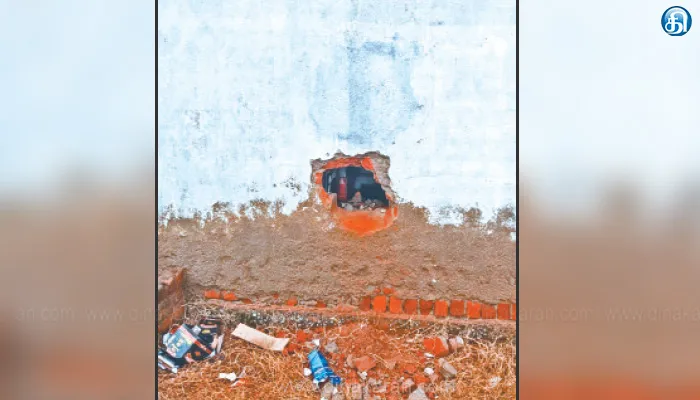 The post டாஸ்மாக் கடை சுவரில் ஓட்டை போட்டு ரூ.1 லட்சம் மதிப்புள்ள மது பாட்டில்கள் திருட்டு: மர்ம நபர்களுக்கு வலை appeared first on Dinakaran.
