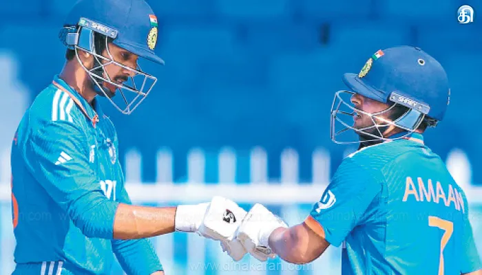 சார்ஜா: ஆசிய கோப்பைக்கான, 19 வயதுக்கு உட்பட்ட வீரர்கள் மோதும் ஒரு நாள் கிரிக்கெட் போட்டியில் நேற்று, ஜப்பான் அணியை 211 ரன் வித்தியாசத்தில் இந்தியா அமர்க்களமாக வென்றது. சார்ஜாவில் ஆசிய கோப்பைக்கான, 19 வயதுக்கு உட்பட்டோர் மோதும் ஒரு நாள் கிரிக்கெட் போட்டிகள் நடந்து வருகின்றன. நேற்று நடந்த ஒரு போட்டியில் இந்தியா – ஜப்பான் அணிகள் மோதின. டாஸ் வென்ற ஜப்பான் பீல்டிங்கை தேர்வு செய்தது. இதையடுத்து முதலில் ஆடிய இந்திய அணி வீரர்கள் சிறப்பான ஆட்டத்தை வௌிப்படுத்தினர். துவக்க வீரர் வைபவ் மாத்ரே 29 பந்துகளை எதிர்கொண்டு 4 சிக்சர், 6 பவுண்டரிகளுடன் 54 ரன் எடுத்து ஆட்டமிழந்தார். கேப்டன் முகம்மது அமான் அற்புதமாக பேட்டிங் செய்து பந்துகளை நாலாபுறமும் சிதறடிக்க செய்தார். 118 பந்துகளை எதிர்கொண்ட அவர் 7 பவுண்டரிகளுடன் 122 ரன் விளாசி கடைசி வரை அவுட்டாகாமல் களத்தில் இருந்தார்.