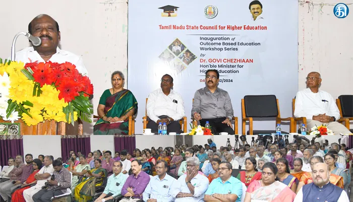 The post தமிழ்நாடு மாநில உயர்கல்வி மன்றம் சார்பில் நடைபெற்ற விளைவு அடிப்படையிலான கல்விப்பட்டறையை தொடங்கி வைத்தார் அமைச்சர் கோ.வி.செழியன் appeared first on Dinakaran.