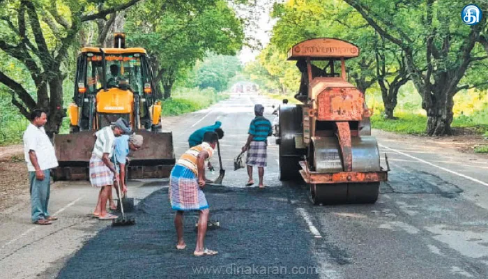 The post உத்திரமேரூர் அருகே மழை பாதித்த சாலைகள் சீரமைக்கும் பணி தீவிரம் appeared first on Dinakaran.