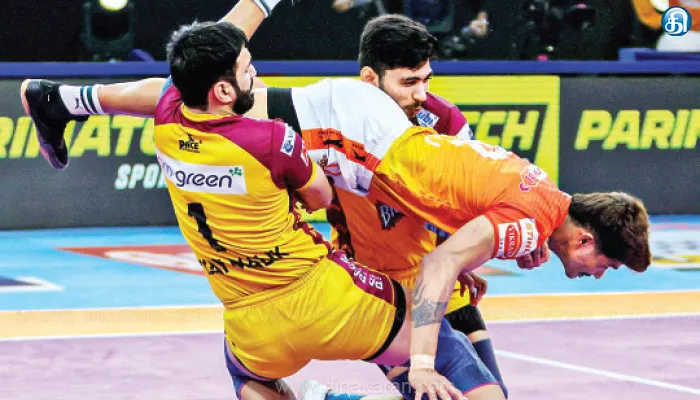 நேற்றிரவு நடந்த மற்றொரு போட்டியில் தெலுங்கு டைட்டன்ஸ் 48-36 என புனேரி பால்டன் அணியை வீழ்த்தியது. தெலுங்கு டைட்டன்ஸ் தனது லீக் போட்டிகள் அனைத்தையும் முடித்துவிட்டது. 66 புள்ளிகளுடன் 7வது இடத்தில் உள்ள அந்த அணி 99 சதவீதம் பிளே ஆப் வாய்ப்பை இழந்துவிட்டது. யு மும்பா 66 புள்ளிகளுடன் 6வது இடத்தில் உள்ள நிலையில் நாளை அரியானா, நாளை மறுநாள் பெங்காலுடன் மோத உள்ளது.