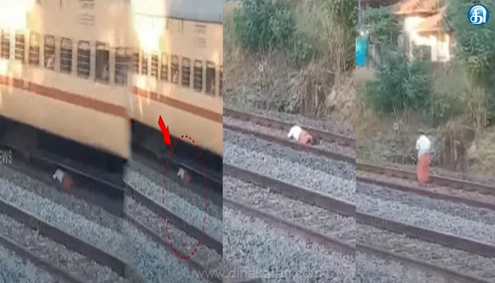 கேரளா: கேரள மாநிலம் கண்ணூரில் ரயில்வே தண்டவாளத்தை பள்ளி பேருந்தின் உதவியாளர் கடந்த போது திடீரென ரயில் வந்ததால் சற்றும் தாமதிக்காமல் தண்டவாளத்தின் நடுவில் படுத்து உயிர் தப்பியுள்ளார். பவித்ரன் என்பவர் தனியார் பள்ளி வாகனத்தில் கண்டெக்டராக பணிபுரிந்து வருகிறார். இவர் பணி முடிந்து நேற்றைய தினம் வீடு திரும்பும் போது கண்ணூர் பள்ளிப்பாறை என்ற இடத்தில் அங்கிருந்த ரயில்வே தண்டவாளத்தை கடந்த போது எதிரே திடீரென ரயில் வந்துள்ளது ரயிலை பார்த்து அதிர்ச்சி அடைந்த பவித்ரன் சற்றும் தாமதிக்காமல் ரயில் தண்டவாளத்தில் படுத்துக்கொண்டார். 23 பெட்டிகள் கொண்ட அந்த ரயில் முழுமையாக கடந்து சென்ற பிறகு அவர் ரயில்வே தண்டவாளத்தில் சிறு காயங்கள் இல்லாமல் உயிர் தப்பினார். இந்த காட்சியை எதிர்திசையில் அமர்ந்திருந்த ஒருவர் விடியோ பதிவு செய்தார். ரயில் வரும் போது எந்த விதமான பதற்றமும் அடையாமல் சட்ரென்று ரயில் தண்டவாளத்தில் படுத்து நபர் உயிர் தப்பிய வீடியோ தற்போது வைரலாக பரவி வருகிறது.