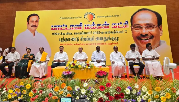 வானூர்: தமிழகத்தில் மழை, வெள்ளத்தால் பாதிக்கப்பட்ட மக்களுக்கு ஒன்றிய அரசு உடனடியாக நிவாரணம் வழங்க வேண்டும் என பாமக சிறப்பு பொதுக்குழுவில் தீர்மானம் நிறைவேற்றப்பட்டது. விழுப்புரம் மாவட்டம், வானூர் தாலுகா பட்டானூரில், பாமக புத்தாண்டு சிறப்பு பொதுக்குழு கூட்டம் இன்று நடந்தது. கட்சி தலைவர் அன்புமணி தலைமை தாங்கினார். கவுரவ தலைவர் ஜி.கே.மணி, பொதுச்செயலாளர் வடிவேல் ராவணன், பொருளாளர் திலகபாமா, ஆலோசனை குழு தலைவர் தீரன் ஆகியோர் முன்னிலை வகித்தனர். கட்சி நிறுவனர் ராமதாஸ், சிறப்புரை ஆற்றினார்.