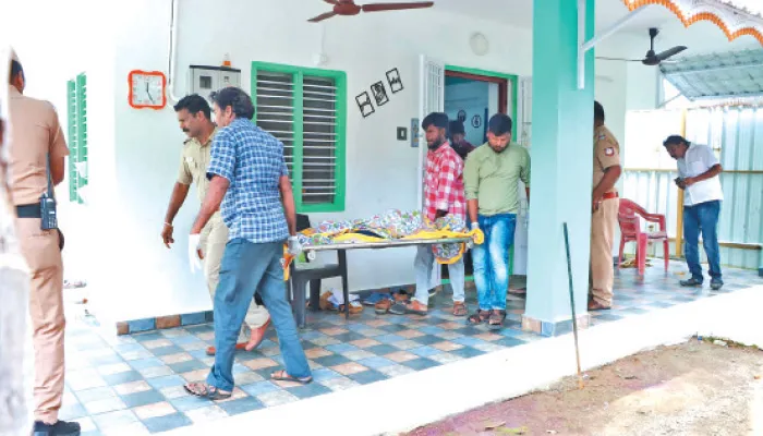 திருவண்ணாமலை: திருவண்ணாமலை கிரிவல பாதையில் உள்ள விடுதியில் தாய், மகள், மகன் உள்பட 4 பேர் சயனைடு தின்று தற்கொலை செய்து கொண்டனர். திருவண்ணாமலையில் உள்ள அண்ணாமலையார் கோயிலுக்கு தினமும் ஏராளமான பக்தர்கள் வந்து சுவாமி தரிசனம் செய்து வருகின்றனர். இங்கு பவுர்ணமி நாளில் லட்சக்கணக்கான பக்தர்கள், 14 கிலோ மீட்டர் தூரம் கிரிவலம் வருவார்கள். வௌியூர் பக்தர்கள் தங்குவதற்காக கிரிவல பாதையில் ஏராளமான தனியார் தங்கும் விடுதிகள் உள்ளது. இந்நிலையில் கிரிவலப்பாதையில் சூரியலிங்கம் அருகே உள்ள ஒரு விடுதியில் ஒரே குடும்பத்தை சேர்ந்த 4 பேர் நேற்று அறை எடுத்து தங்கினர். இன்று காலை நீண்ட நேரமாக அவர்கள், அறையை விட்டு வெளியே வரவில்லை. இதனால் விடுதி ஊழியர்கள், அறையின் கதவை தட்டியுள்ளனர். கதவை திறக்கவில்லை.