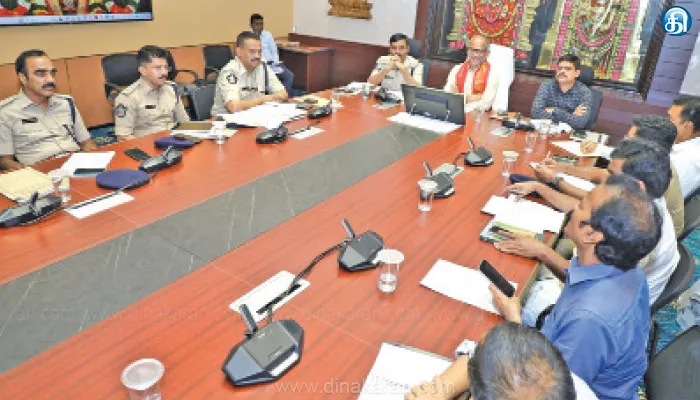 வைகுண்ட ஏகாதசியன்று சரியான பாதுகாப்பு ஏற்பாடுகளை உறுதி செய்யுமாறு தேவஸ்தான விஜிலென்ஸ் மற்றும் போலீசாரை கேட்டுக்கொண்டார். மேலும் உள்ளூர் போலீசாருடன் ஆக்டோபஸ் குழுவின் சேவைகளும் தேவைக்கு பயன்படுத்தப்படும் என்றார். இதில் திருப்பதி எஸ்.பி. சுப்பாராயுடு, முதன்மை பாதுகாப்பு அதிகாரி ஸ்ரீதர், சி.இ. சத்தியநாராயணா உள்ளிட்ட அதிகாரிகள் பங்கேற்றனர்.