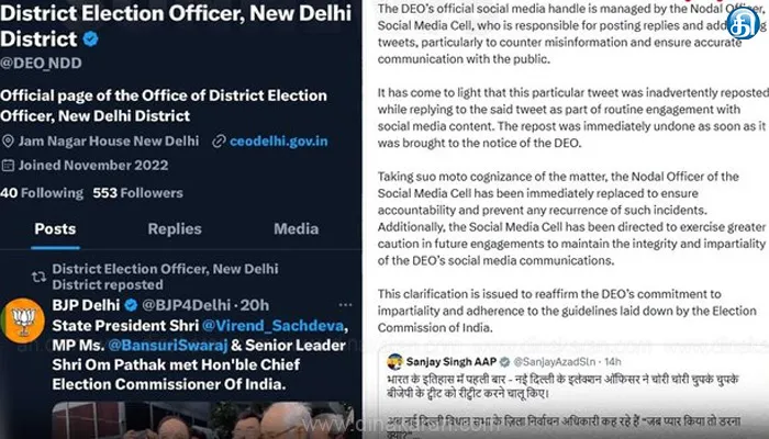 இந்த விஷயத்தை தானாக முன்வந்து கவனத்தில் கொண்டு, பொறுப்புணர்வை உறுதி செய்வதற்கும் இதுபோன்ற சம்பவங்கள் மீண்டும் நிகழாமல் தடுப்பதற்கும் சமூக ஊடகப் பிரிவின் நோடல் அதிகாரி உடனடியாக மாற்றப்பட்டுள்ளார். கூடுதலாக, DEO-வின் சமூக ஊடகத் தொடர்புகளின் நேர்மை மற்றும் பாரபட்சமற்ற தன்மையைப் பராமரிக்க எதிர்கால ஈடுபாடுகளில் அதிக எச்சரிக்கையுடன் இருக்குமாறு சமூக ஊடகப் பிரிவுக்கு அறிவுறுத்தப்பட்டுள்ளது. இந்தியத் தேர்தல் ஆணையத்தால் வகுக்கப்பட்ட வழிகாட்டுதல்களை பாரபட்சமற்ற தன்மை மற்றும் பின்பற்றுவதில் DEO-வின் உறுதிப்பாட்டை மீண்டும் உறுதிப்படுத்த இந்த விளக்கம் வெளியிடப்படுகிறது. இவ்வாறு தெரிவித்தார்.