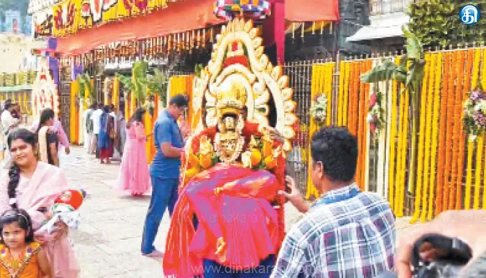 இதில் கோயில் மண்டபத்தில் சுவாமி சிலைகளையும் வைத்து காட்சி அரங்கம் அமைத்திருந்தனர். இந்த அலங்காரம் அனைவரையும் வெகுவாக கவர்ந்திருந்தது. ஆனால் திடீரென நேற்று எவ்வித முன்னறிவிப்பும் இன்றி குறிப்பாக நன்கொடையாளருக்கு தெரிவிக்காமல் அனைத்து அலங்கார சிலைகளையும் தேவஸ்தான ஊழியர்கள் அப்புறப்படுத்தினர். அவற்றை டிராக்டரில் ஏற்றிச்சென்றனர். இதுகுறித்து தகவலறிந்த நன்கொடையாளர் கோயில் வளாகத்தில் திரண்டார். அங்கு வந்த தேவஸ்தான அதிகாரிகளிடம் வாக்குவாதம் செய்தார். நன்கொடையாளர் கூறுகையில், அதிகாரிகளின் செயல் மோசமாக உள்ளது. எங்களுடைய மன உணர்வு, பக்தி, கடவுள் மீது கொண்ட அன்பு ஆகியவற்றை தேவஸ்தான அதிகாரிகள் புண்படுத்தி விட்டார்கள் என்றார். அவரை தேவஸ்தான அதிகாரிகள் சமாதானப் படுத்தினர். இதனால் அங்கு பரபரப்பு ஏற்பட்டது.