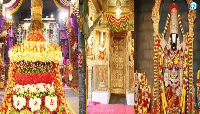 திருப்பதி ஏழுமலையான் கோவிலில் வைகுண்ட ஏகாதசியையொட்டி கோவில் முழுவதும் வண்ண மின் விளக்குகள் கொண்டு அலங்காரம் செய்யப்பட்டு மின்னொளியில் ஜொலித்தது. மேலும் பல்வேறு மாநிலங்களில் இருந்து கொண்டுவரப்பட்ட 10 டன் மலர்கள், பல வகையான பழங்கள் கொண்டு கோவில் வெளிப்புறம், உள்புறம் மற்றும் கொடிமரம், பலிபீடம், வைகுண்ட வாசல் உள்ளிட்ட இடங்கள் அலங்கரிக்கப்பட்டுள்ளன